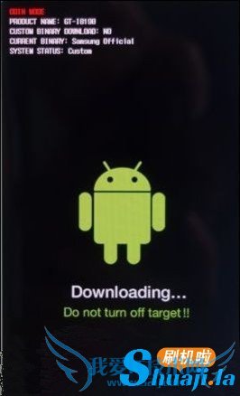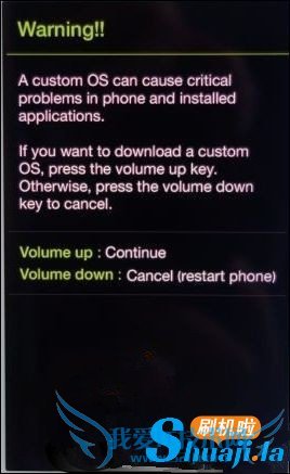 2.三星Galaxy Note3(N900国际版)手机关机,同时按住音量下键 + HOME键 + 电源键,等待几秒钟直至出现如下界面