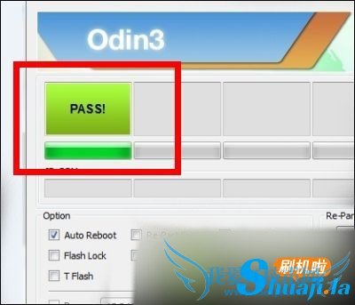 6.选择完毕之后点击Start开始三星Galaxy Note3(N900国际版)刷机,等待几分钟后在COM上显示PASS说明三星Galaxy Note3(N900国际版)刷入recovery成功具体可查看下图