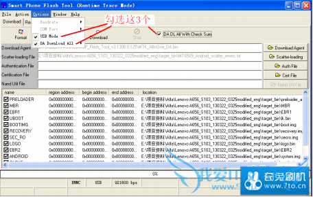 7:然后点击勾选【DA DL All With Check Sum】,检查name处,要全部打钩: