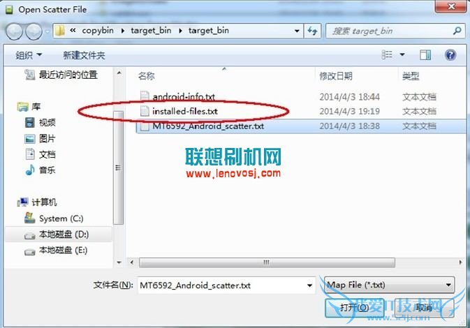 2,我们再解压好recovery工具包,会发现有一个recovery.img的文件和一个TXT文件,你可以直接导入这个TXT,也可以把recovery.img文件替换到A808T的完整包里,直接用完整包刷,如下图,选择包里的 scatter 文件: