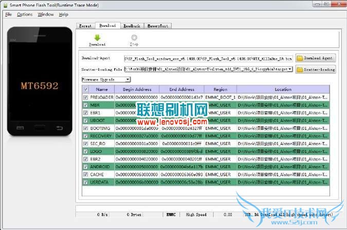 4,设置完成后,再点击工具中的download选项,此时界面会显示跑动几圈的紫色进度条,等它跑完。(这里还没开始刷机)