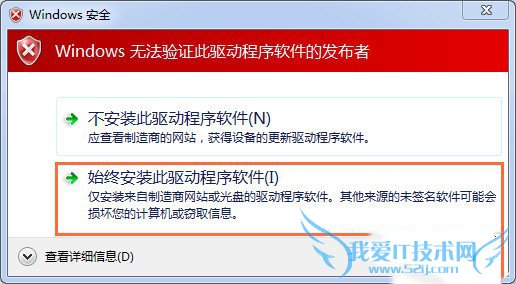 如在安装驱动过程中,出现红色的驱动安装确认框,请选择“始终安装此设备驱动程序”。
