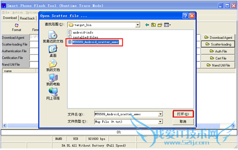 6.然后在刚才解压出来的target_bin文件夹中选择MT6573_Android_scatter.txt(注意:这个文件的名字不同的固件有所不同)