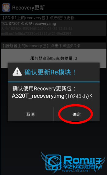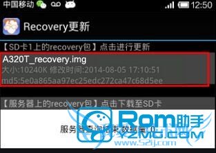6.如果您已经将【A320T_recovery.img】文件复制到了手机SD卡上的话,那么,此时软件列表里就应该会显示【A320T_recovery】,直接点击并且确认更新;