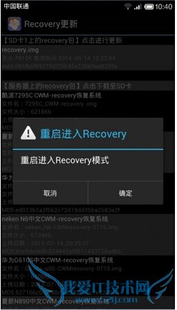 8:很快,recovery就会成功刷入,会弹出来对话框询问您是否重启到recovery,点取消即可