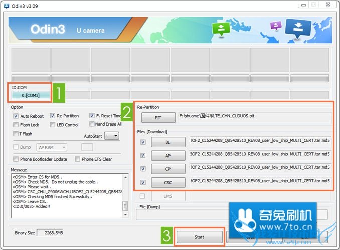 运行刷机工具 Odin3 v3.09.3.exe手机进入挖煤模式后连接电脑,odin工具的com如下图1表示驱动正常;