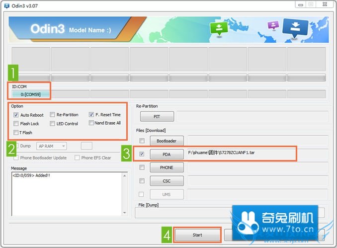 运行刷机工具 Odin3.exe确认手机是否连接如下图;