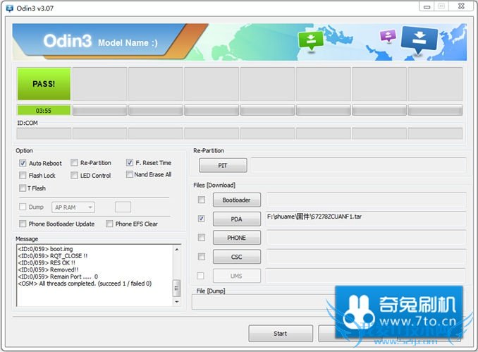点击 PDA 按钮,选择固件文件夹下的 S7278ZCUANF1.tar ;