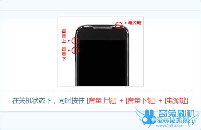 2:不要开机,在关机状态下,同时按住音量上键+电源键不放开;