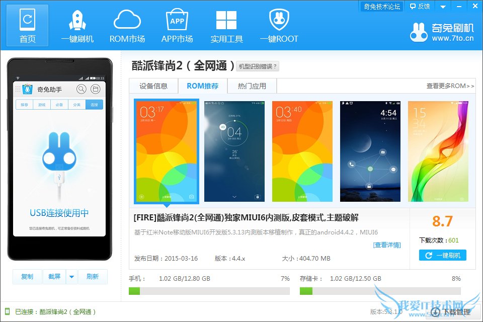 随着智能手机的普及,刷机逐渐变成了热门,网上已经可以找到几款一键刷机软件了,比如:奇兔刷机,支持酷派锋尚2(全网通)一键刷机,支持多数热门机型一键刷机的功能。
