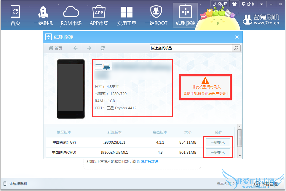 这时候弹出“欢迎使用线刷救砖”提示,不知道如何选择正确的线刷包的用户,可点击“如何选择?”进入相关教程贴学习,三星手机用户可直接选择三星线刷包。