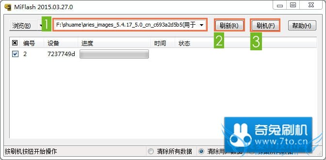 安装完成后,打开 “我的电脑” C:\Program Files (x86)\Xiaomi\MiPhone\MiFlash.exe, 将复制的内容粘贴到下图步骤1区域位置,按照下面操作: