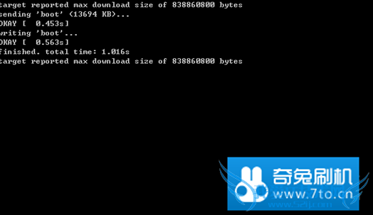 5.刷机时根据电脑速度来,一般情况5分钟 可以完成,如果出现下图这样,下面一闪一闪说明在刷入系统了,请耐心等待