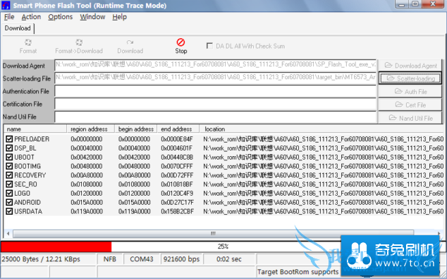 出现如上图所示后手动进行开机,表示联想A65刷入官方固件成功,联想A65救砖成功。