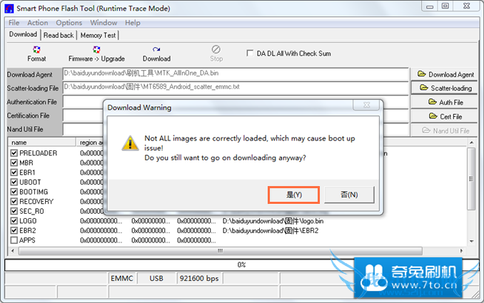 3.点击“download”之后会出现一个警告,如图,点“是”即可继续刷机