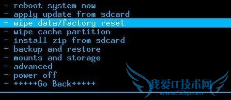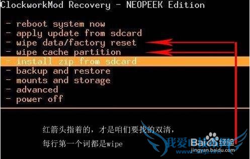注意进入后有以下两行:wipe data/factory resetwipe cache partition