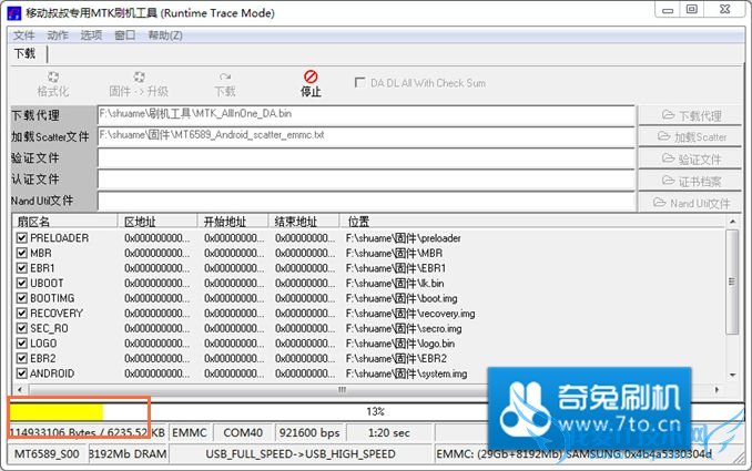 注意:出现黄色进度条才是真正刷机,如果为出现请检查驱动是否正常安装;