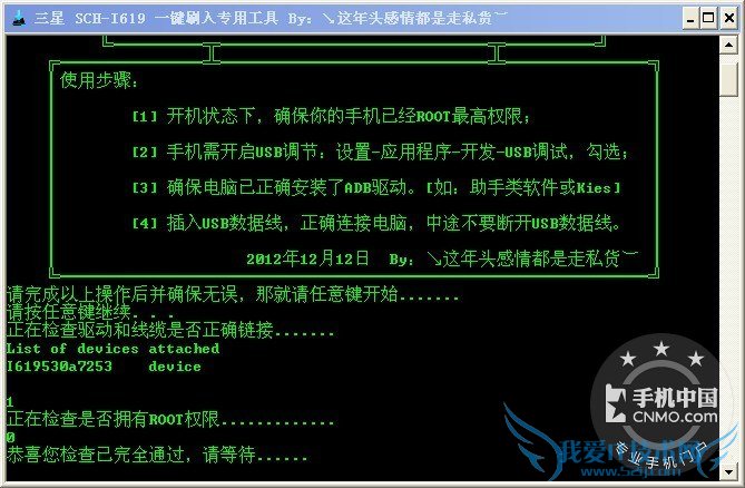 2.三星I619(Galaxy Ace Dear)手机要有root权限,还没获取三星I619(Galaxy Ace Dear)ROOT权限的机友请参考这篇三星I619(Galaxy Ace Dear)ROOT教程
