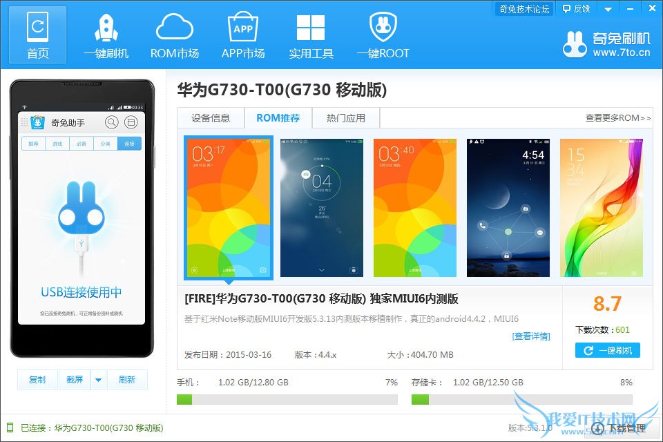 看到这里,你是不是觉得刷机很简单呢,体验更多的华为G730-T00 (G730 移动版)刷机ROM包,用户可进入奇兔刷机ROM市场下载,还不快来体验刷入各种手机OS的乐趣,希望这篇华为G730-T00 (G730 移动版)刷机教程对大家有所帮助。
