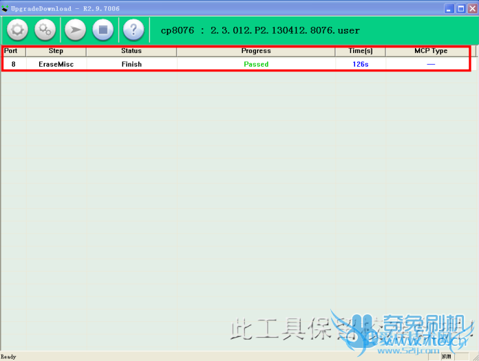 6.一般约数十秒后, 状态栏提示 “Passed” 时, 表示升级完成, 此时可进行下一台的升级;