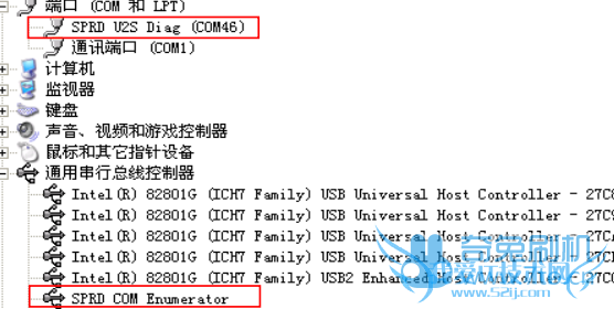 4.手机关机状态下, 通过数据线连接手机至电脑 设备管理器中查看设备端口如下图示: