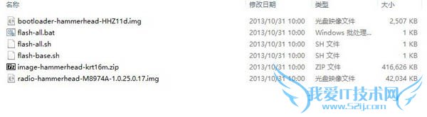 注意:需要将上图所示的6个单独文件放在“platform-tools”文件夹里,而不是将 hammerhead-krt16m文件夹(下图所示) 放到“platform-tools”文件夹哦!