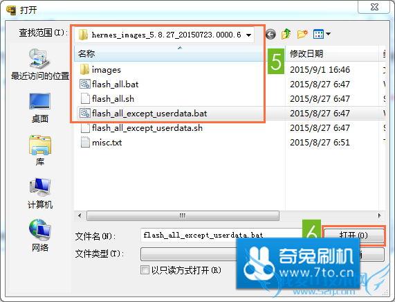 找到 flash_all_except_userdata.bat 并打开,如下图: