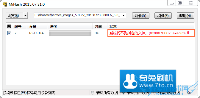 点击刷机后可能出现如下 错误提示 ,如下图: