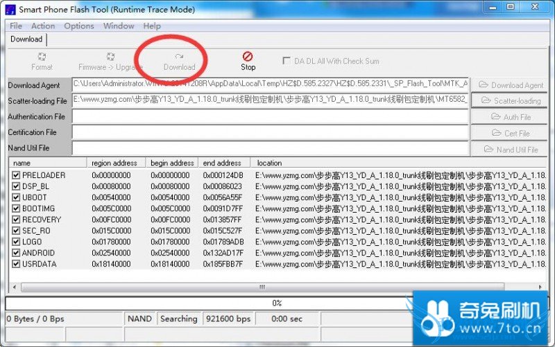 4.选择好之后,点击上面的“Download”按钮,然后把手机关机,连接到电脑。就会开始自动刷机了