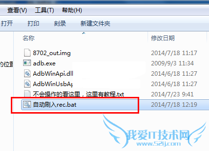 4.接着在解压出来的文件夹里找到【自动刷入rec.bat】文件,然后直接双击打开,然后按回车键即可