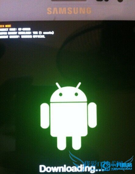4.三星I699/Galaxy Trend手机首先要进入刷机模式,进入方法(关机状态下同时按住 音量下、HOME键、电源键,屏幕亮起放开,然后再按音量上键,进入界面为绿色机器人,此为刷机模式)