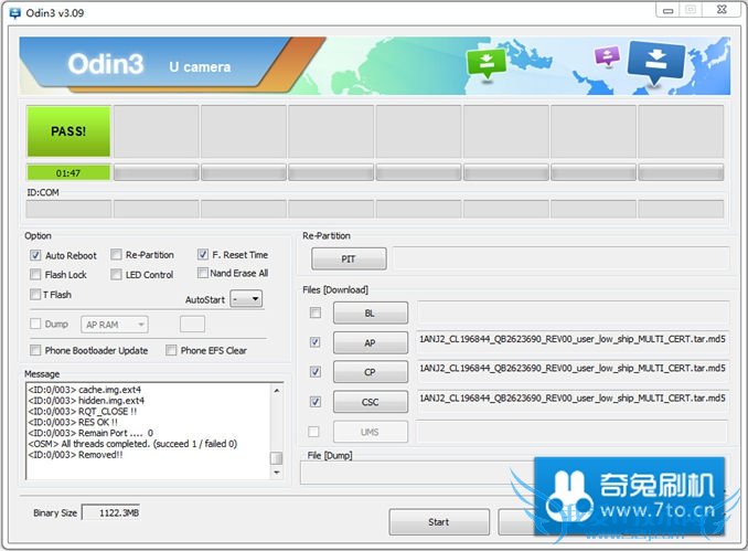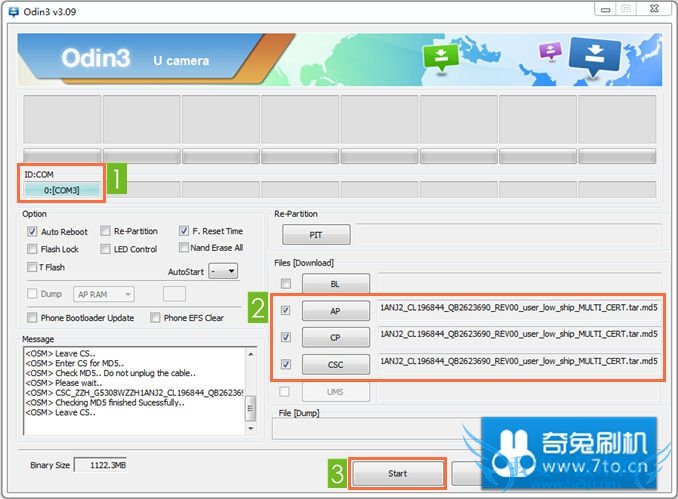 点击 CSC 按钮,选择固件文件夹下的 CSC_ZZH_G5308WZZH1ANJ2_CL196844_QB2623690_REV00_user_low_ship_MULTI_CERT.tar.md5 ;