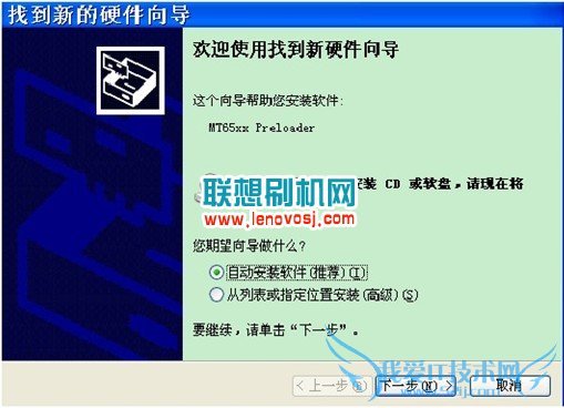 3,手机关机,不要任何操作,直接用数据线连接手机和电脑,当 PC 未安装过驱动时会弹出新硬件向导,如下图: