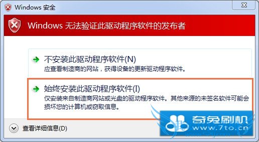 5.出现红色的驱动安装确认框,请选择“始终安装此设备驱动程序”。