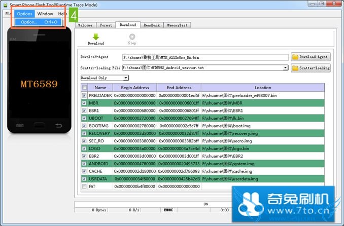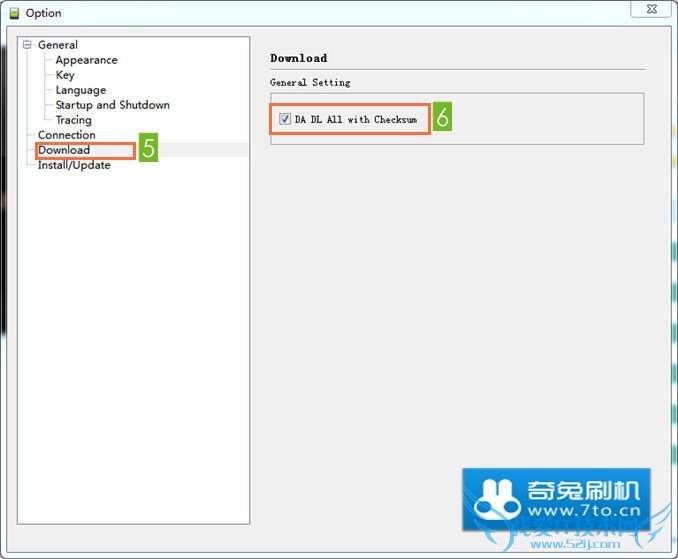 4.选择download,将DA DL All with Checksum勾选上,如下图: