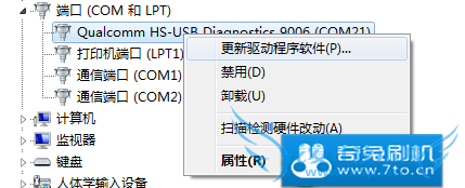 4.没装好的是感叹号(WIN7)或者问号(XP)或者未知设备,点击右键,选择更新驱动