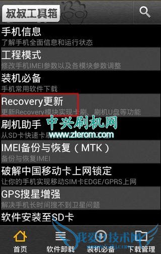 3.点击工具界面中的“Recovery更新”如下图: