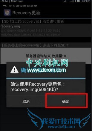 4.再找到“recovery.img”文件点击它,提示是否刷入,点击“确定”开始刷入中兴M901C/Grand Memo2电信版recovery了,如下图: