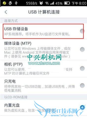 1.先把上面下载好了的中兴M901C/Grand Memo2电信版recovery文件解压,然后把手机连接电脑,选择“USB存储设备”再把得到的"recovery"文件复制到内存卡中,如下图: