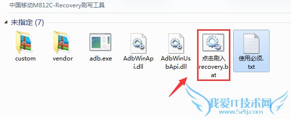 3..然后将上面下载好的中国移动M812C第三方recovery在电脑前进行解压,然后双击运行【点击刷入recovery.bat】,如下图;