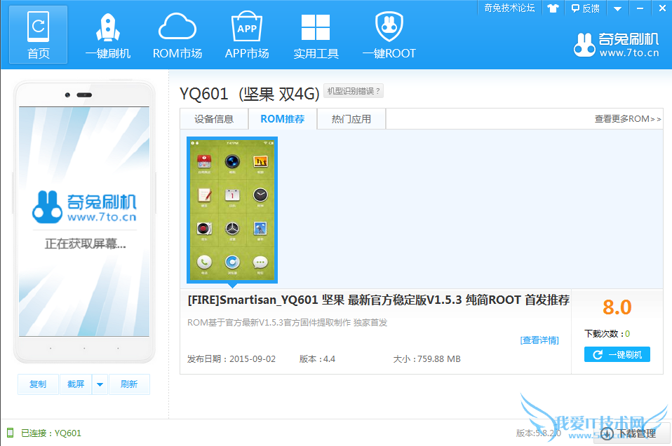 随着智能手机的普及,刷机逐渐变成了热门,网上已经可以找到几款一键刷机软件了,比如:奇兔刷机,支持锤子YQ601 (坚果 双4G)一键刷机,支持多数热门机型一键刷机的功能。
