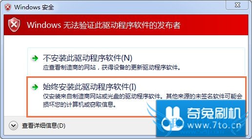 出现红色的驱动安装确认框,请选择“始终安装此设备驱动程序”。
