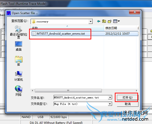 6.然后在刚才解压出来的recovery文件夹中选择MT6577_Android_scatter_emmc.txt