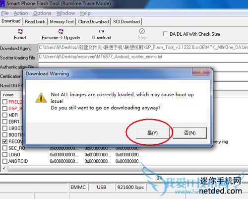 8.接点击“是”按钮之后手机在关机状态下,迅速用usb线将手机与电脑端连接,自动开始下载,无需任何操作,如下图显示,正在下载(下载时间有点长,请耐心等待):