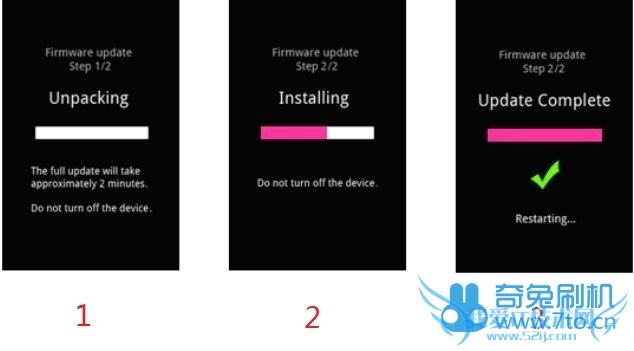 11:进度条走完后,手机自动开机,请勿拔电池。强刷后第一次开机比较慢,请耐心等待。