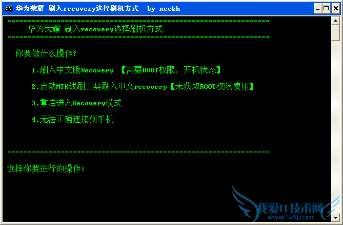 2、输入“1”直接回车进行刷入,该方式是需要ROOT权限的,没有ROOT权限请参考:华为3C ROOT教程