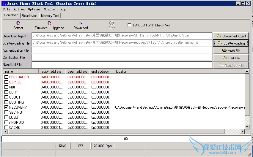 4.工具对话框中,仅勾选“RECOVERY”,并检查recovery.img路径正确;