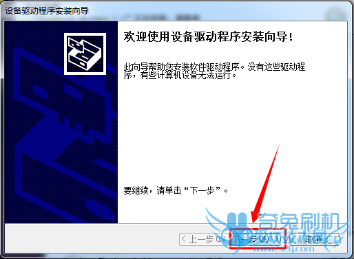 5:开始安装驱动,这时会弹出一个【设备驱动程序安装向导】,点击【下一步】。