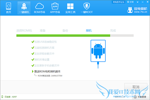3.等操作完成后,酷派大神F1移动版(8297)进入自动刷机模式啦,这时候只要耐心等待手机自动重启就行了。