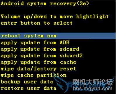8:强刷完成,返回recovery主界面,选择reboot system now ,重启手机进入正常开机